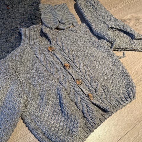 Hjemmestrikket cardigan perfekt i barnehage eller andre. Kom for sent for vårt barn så helt ubrukt. Se gjerne andre annonser