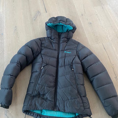 Jakken har en nydelig blå farge og er designet for utendørs bruk og gir isolasjon og varme.