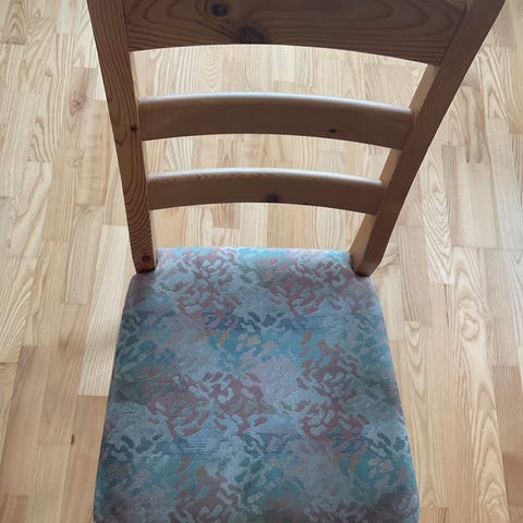 Noen av stolene hadde nok hatt godt av å bli stivet opp litt i beina og en av de har en skade på ene hjørnet.