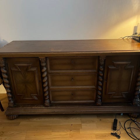 Vakker gammel sjenk nymalt i en dus grønnfarge.