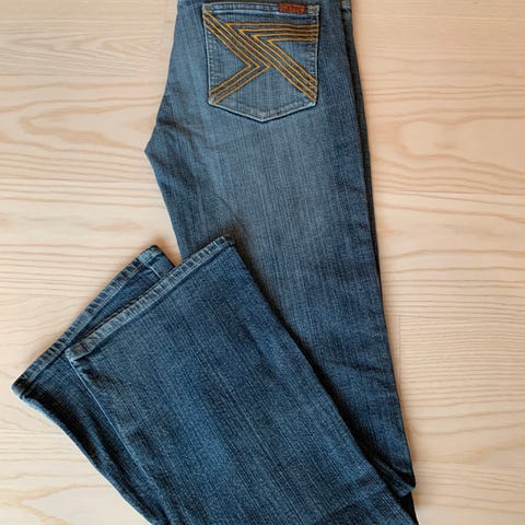 Selger en av mine mest populære og beste jeans gjennom tidene. 7 for all mankind har vært stort siden 2000 tallet blandt Hollywood-stjerner og andre kjendiser. Jeg har hatt mange av disse. Nå kommer både lavere liv og skinny jeans tilbake, så jeg vil gjerne noen andre også skal få teste disse supergode jeans. Buksa er 26 tommer og ankel.