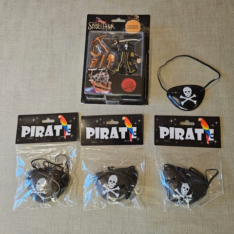Alt er godt brukt, men fortsatt helt fint for lek, utkledning og Sabeltann fans!