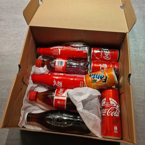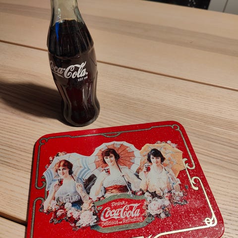 Caps laget av cola. Har kun hengt opp som pynt. 20 år gammel.