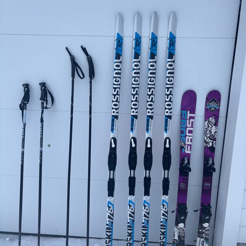 Skiene er som nye. De har blitt testet 1 gang av et barn.