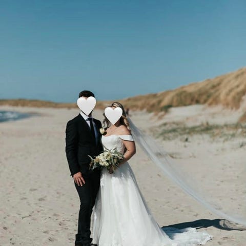 Etter et helt fantastisk bryllup har jeg nå valgt å selge dette nydelige, enkle, 2 meter lange brudesløret.
