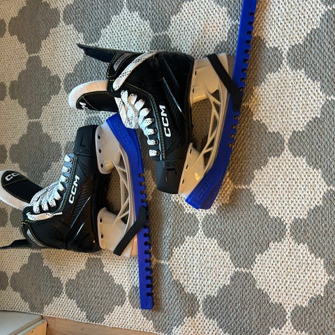 Barneskøyter for ishockey i størrelse 35. Skøytene har svart og hvit farge og er designet for barn.