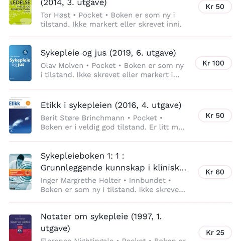 pensumbøker sykepleie-studiet. samlet 600kr