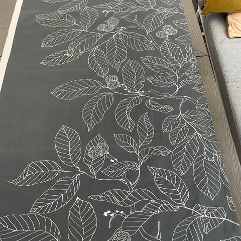 Stoff fra finske By Toli Oy. ID COLLECTION III. Vintage 90 tall. Har vært gardin. Vasket men ikke strøket. Str ca 1m x 140 ca