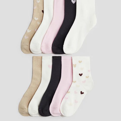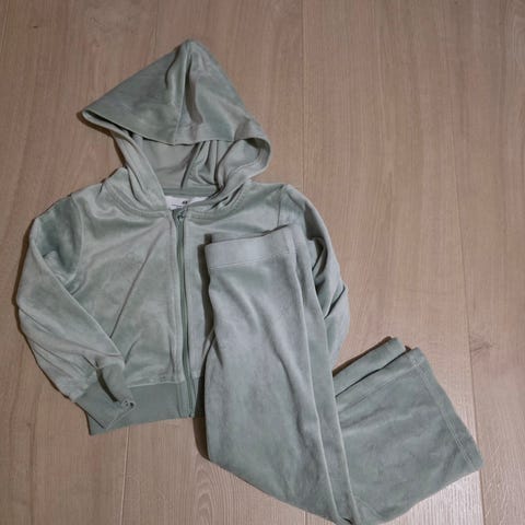 H&M barneklær for jente i størrelse 104 med flerfarget design. Inkluderer ulike plagg med forskjellige mønstre og farger, egnet for barn.