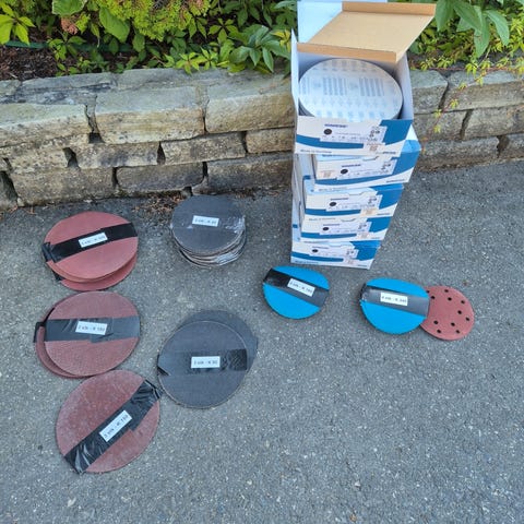 Selges med et sponavsug fra Meec tools, samt flere ruller med slipepapir i forskjellige korninger. Disse kuttes på mål til maskinen.
