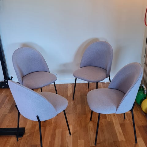 IKEA stol med sete og rygg i grått stoff og ramme i metall. Stolen har en enkel og funksjonell design som passer til ulike typer bord og rom. Stolene selges samlet. MÅ HENTES! :) selger også spisebord (se egen annonse). Samlet pris for bord og stoler er 2000kr.
