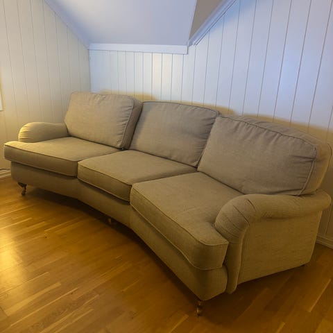 Sofa, tror det kan være hødnebo. Men usikker på merke. Kjøpt ny noen år siden. Men ikke helt oppdatert på detaljer grunnet del av et dødsbo.
