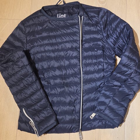 Line of Oslo dunjakke i størrelse M for dame. Jakken er grå og laget av dun.