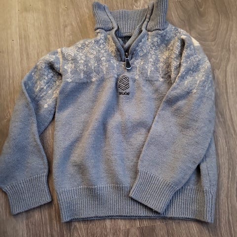 Den grå/hvite er hjemmestrikket mens den andre er kjøpt på xxl.