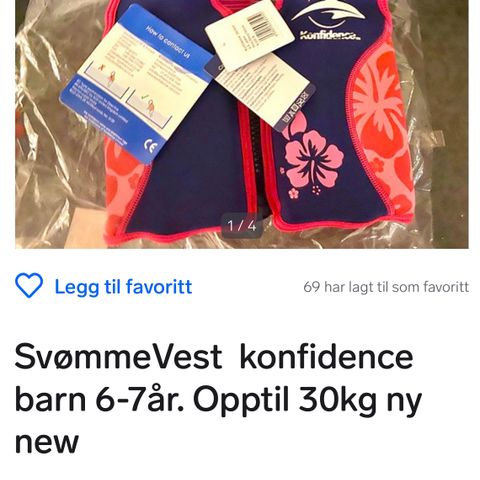 Konfidence svømmevest 3 - 6år opptil 30 kg