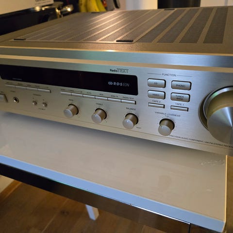 Denon Ceol Piccolo forsterker/ nettverksmottaker med fjernkontroll og tilkoblingskabel . Har tilkoblinger for høyttalere, nettverk, digital lyd og USB. Forsterkeren har AirPlay