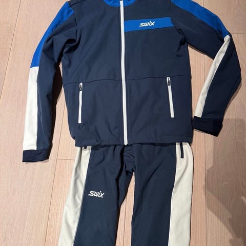 Swix ski dress / treningsdress for herre i størrelse S. Jakken og buksen er laget med Gore-Tex Infinium materiale, som gir beskyttelse mot vind og vær. Jakken har rød og svart farge med glidelås og elastiske mansjetter. Buksen er svart med elastisk midje og tilpasset for skiturer, trening og andre utendørsaktiviteter. Kan sendes i posten.