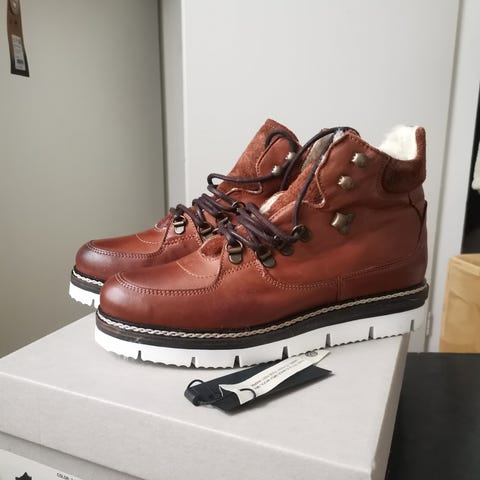 Varme og svært komfortable boots fra Bianco, style Biaatalia varm, str. 39. Normal i størrelsen. Ekte, mykt skinn. Nydelig brunfarge. Glidelås i siden, god såle med godt grep. Pent brukt. Varmt ullfor. Kjøpt for ca 1500.-. Lan sendes. Kjøper betaler frakt.