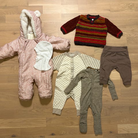 Polarn O. Pyret, Reflex, Newbie og Cubus, str 50-62, ganske like i størrelsen.