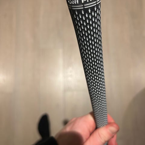 Det er nylig montert helt nytt Golf Pride midsize-grep, ikke brukt etter montering.
