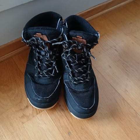 Skoene er svarte med solid yttersåle for godt grep. De har fôret innside som gir varme og komfort i kaldt vær.