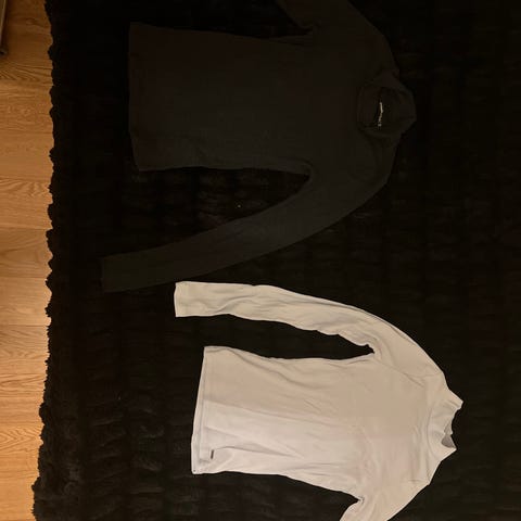 Abercrombie & Fitch T-skjorte og bluse med glidelås bak i størrelse XS, selges for 250kr. Lyseblå T-skjorte har et lite hull under høyre arm og selges derfor for 50kr.