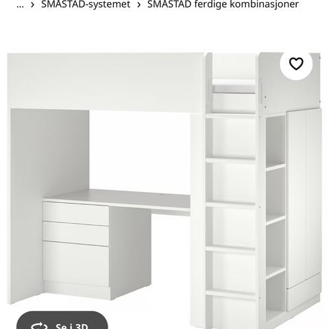 Selger en svært pent brukt IKEA loftseng med skrivebord og klesskap. Fargene er hvit og lys lilla. Madrass følger ikke med.