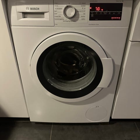 Pen vaskemaskin fra Bosch med stort vaskekapasitet selges billig på grunn av flytting. Vaskemaskinen ser pent ut og er fult fungerende. Ingen feil eller mangler. Kan tilkjøres.