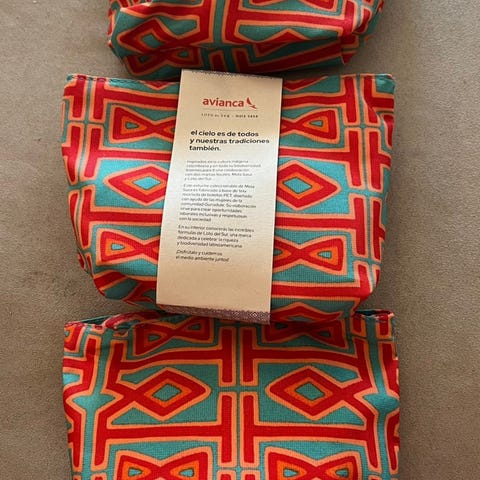 Amenity kits fra Lufthansa First class, United Polaris og SAS