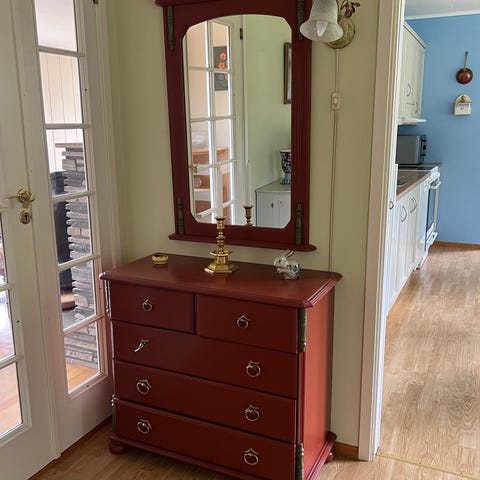 Heltre seksjon m hylle på begge sider. Skap og skuffer. Høy kvalitet. Kjøpt 1978, pent brukt
