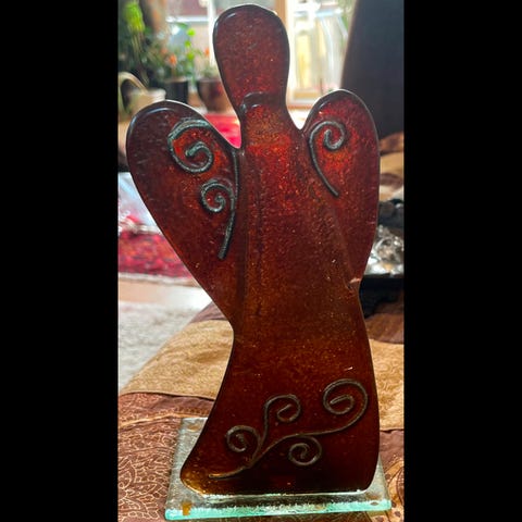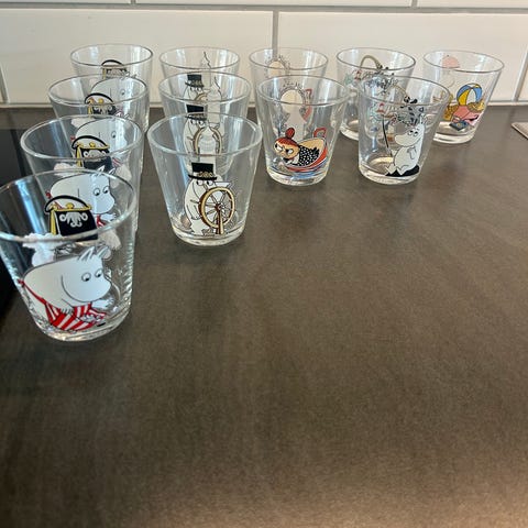 Iittala Mummi dekorasjonsglass i blått glass med motiv av Mummi-figur. Passer til dekorasjon og oppbevaring av små gjenstander.