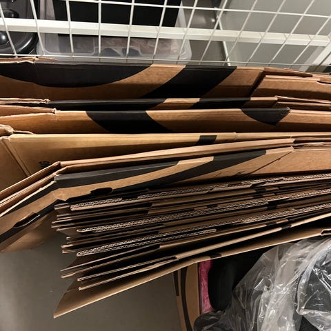 Pappesker egnet for flytting og oppbevaring. Eskenes størrelse og materiale gjør dem passende for pakking av ulike husholdningsartikler.