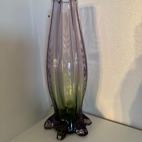 Kjempefin glasskål med nydelige fargegraderinger fra Koboltblå stett og over til grønt og gult på selve skålen