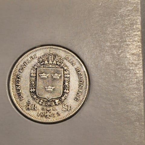 Sverige ⅛ Riksdaler Specie 1833, Sølvmynt , Se bilder for kvalitet