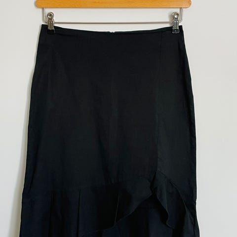 påsydd blonde underskjørt, og blondekant nede. Kjøpt år 2000. Det er altså kjøpt ferdig redesignet, farget og med « slitt» effekt.🥳Vaskes på 30 grader finvask i maskin. Underskjørt kan kneppes opp i front for større splitt, eller hvis man ønsker et ekstra underskjørt under. Hemper øverst hvis man vil bruke belte. Skjørtet sitter veldig fint hvis det er litt stramt over liv og hofter og skrår ut, men smak og behag.🤩 Det måler 90 cm i livet, og ca 104 over hofter. Fargen er blå/grønn/beige melert.. Håper noen kan få glede av dette råkule skjørtet!!🩷☀️
