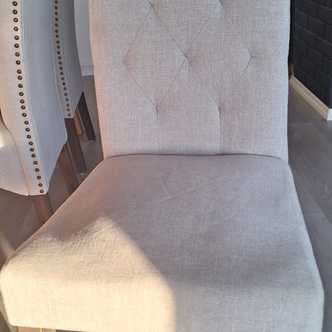 6 stk brune spisestuestoler gis bort - må hentes snarest. Pent brukt, brunt skai og mørke stolbein.
