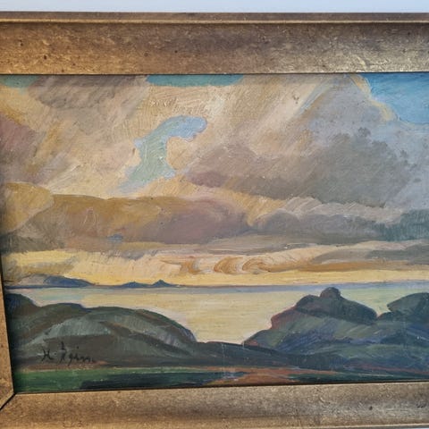 Porselensbilde med dyremotiv av J.P Bratsberg. 36x31 cm
