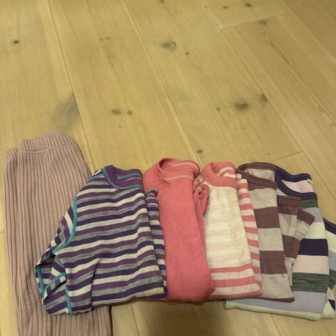 Säljer en liten pakke med ull i str. 98/104. Gott brukt men mycket bruk igen!