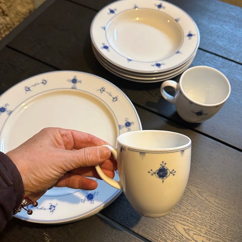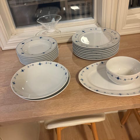 Hvite i bunn med blått mønster, svært dekorative. Som nye, ingen feil, mangler.