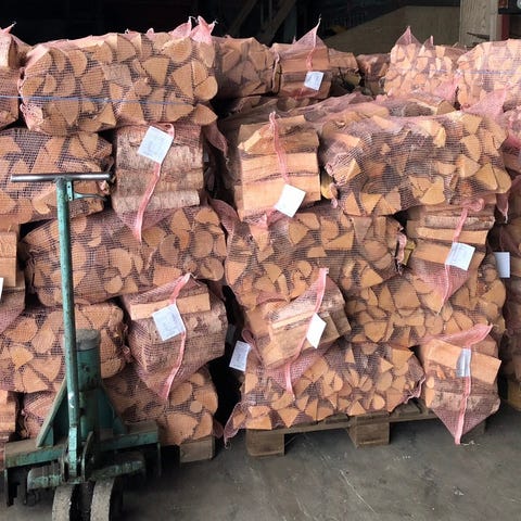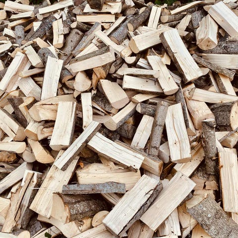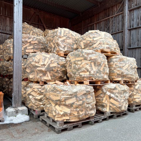 60 L sekker med bjørkeved B-vare selges, 90kr pr sekk.