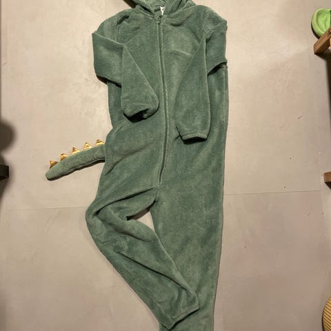 Rød ninja-drakt i str. 128, todelt med hette. Enkel og kul utkledning som funker fint til karneval, bursdag eller lek.