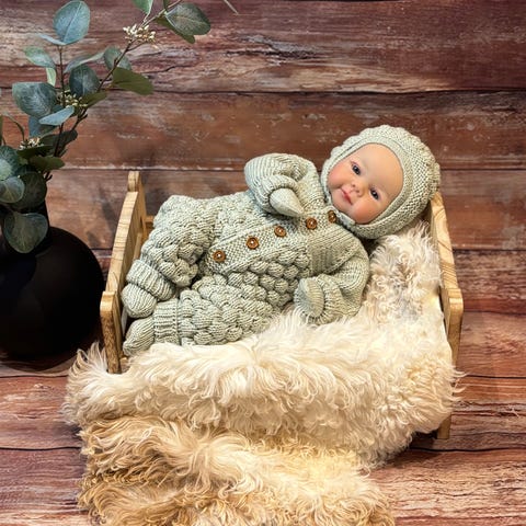 Ca Strl 56-62. Strikket i tynt og mykt garn. Vet dessverre ikke hvilket. Bilde 4 viser fargen best. Lys beige. Kun brukt et par ganger før den ble for liten