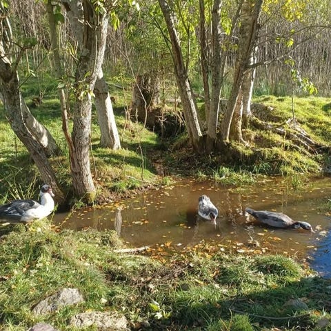 Denne gjengen på 7 trenger nytt hjem. De har fått gå løs mesteparten av tiden her, men etter hyppigere besøk av rev må jeg stenge dem inne for å redde dem når jeg ikke er hjemme.