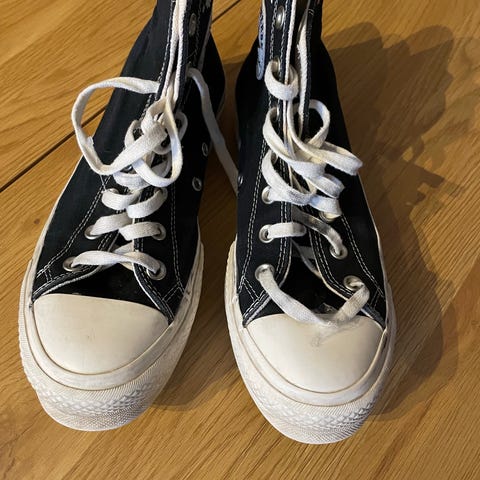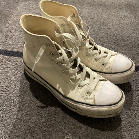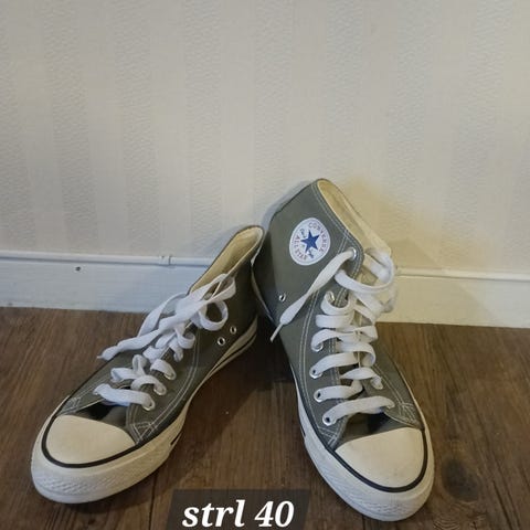 Converse Sneakers joggesko i størrelse 40, hvit farge. Skoene har klassisk høy modell med snøring og gummisåle.