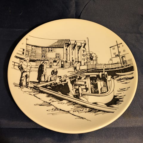 Platen er hel og i pen stand. Passer perfekt på kjøkken, hytte eller som retro veggdekor.