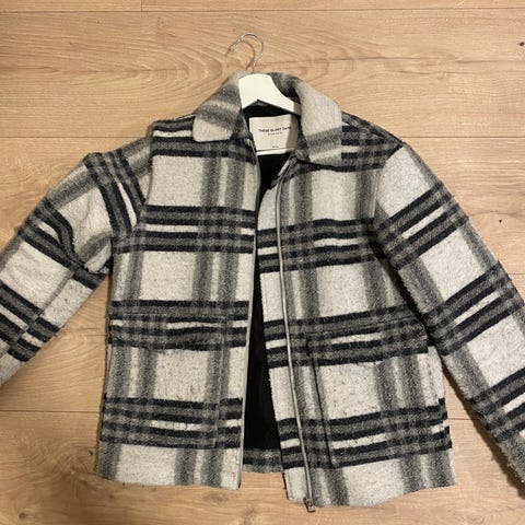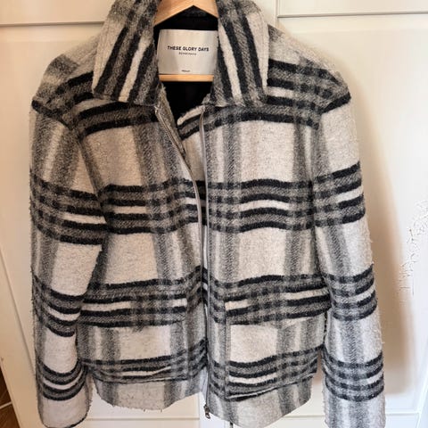 Ubrukt, tynn skjortejakke fra These Glory Days laget i 100 % ull. Lett og behagelig kvalitet som passer godt som lag-på-lag. Størrelse S med oversized passform. Nypris 2 000 kroner.