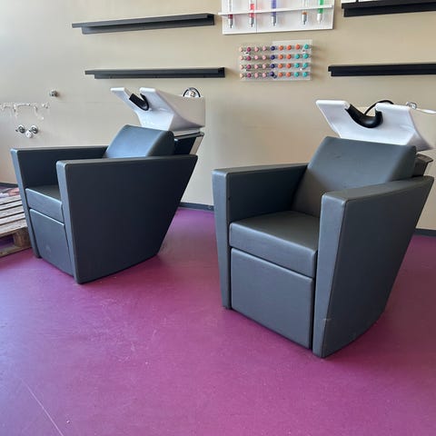 Usikker alder, de sto i salongen jeg kjøpte,jeg har brukt de nå i 5 måneder og er fornøyd,men skal pusse opp salongen og derfor byttes disse ut, til noen som passer bedre inn 🙈