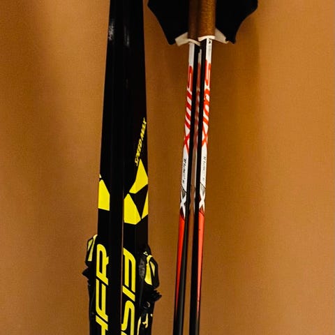 Rossignol klassisk langrennsski i meget god stand. Sålen jevnlig glidet og skiene er i bra stand. Vil passe for ca 55 til 65 kg