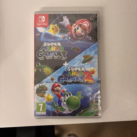 Nintendo Switch Super Mario Galaxy + Super Mario Galaxy 2 spill. Inkluderer to spill i ett, med Mario som hovedkarakter. Spillkassetten er kompatibel med Nintendo Switch-konsollen og leveres i original emballasje med spillkort.