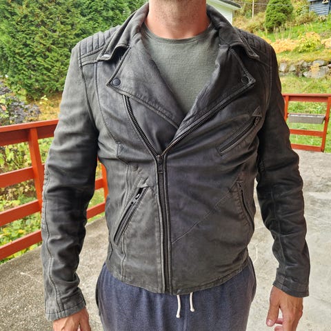 Skinnjakke for herre i svart- brun melert. God å ha på.